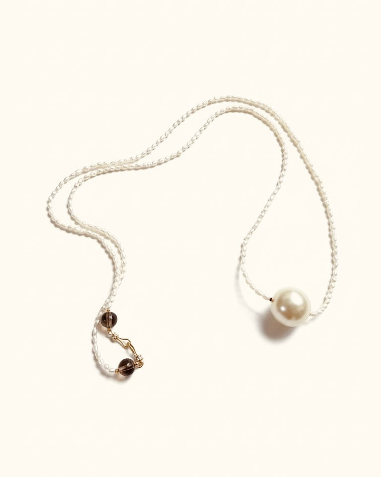 • Materials: Natural pearls, smoky quartz, 14k gold.