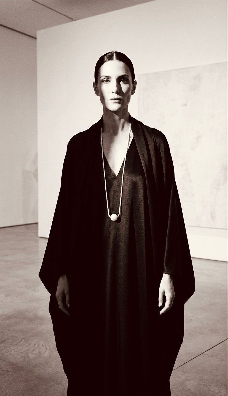 A focal point for a discerning gaze, heightening the architectural stature of the woman.
